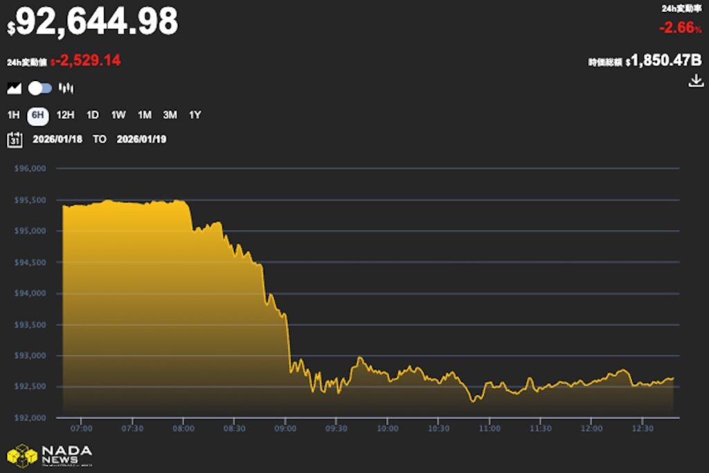 ビットコイン急落、グリーンランド関税懸念で株安連鎖 金(ゴールド)最高値更新|仮想NISHI