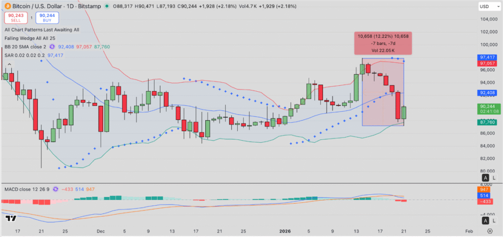 米生産者物価の高止まりと関税判断見送りの中、ビットコイン価格は9万7,000ドルを付ける
