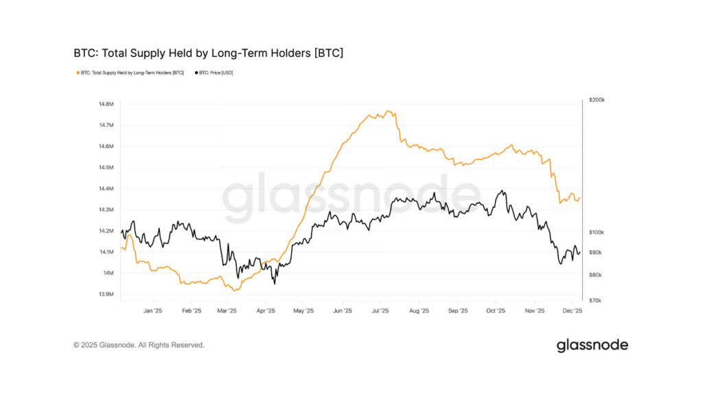 ビットコイン(BTC)の長期保有者(Long-Term Holder:LTH)の供給量は、11月21日に周期的な低水準に達し、同日にビットコインは8万ドル前後で ... Th···