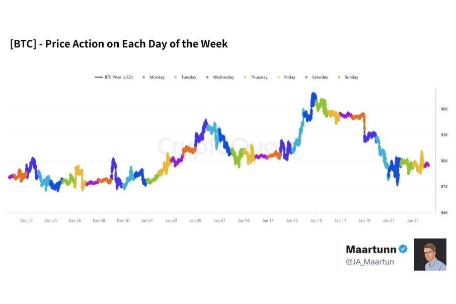 ビットコイン市場は「価格」より「動く時間」を読む段階へ──曜日別プライスアクションとオンチェーンが示す···